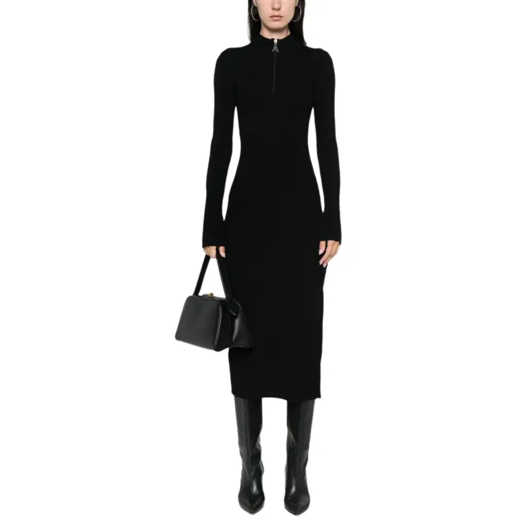 Patrizia Pepe FW24 Длинное платье с длинными рукавами женское черное