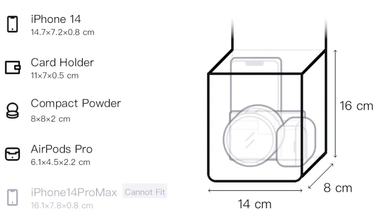 Верхняя одежда Длина: 34 см, Низ Длина: 14 см, Ширина: 8 см, Тело Длина: 16 см