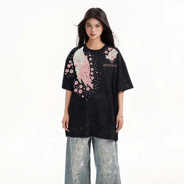 [Одежда Комплекты] Черный Футболка + Белые Тай-дай Повседневные Штаны