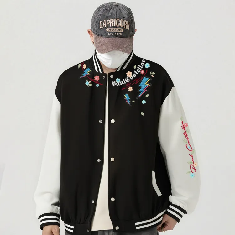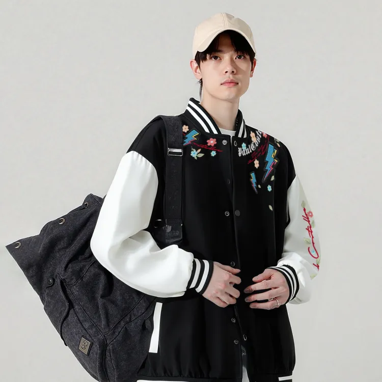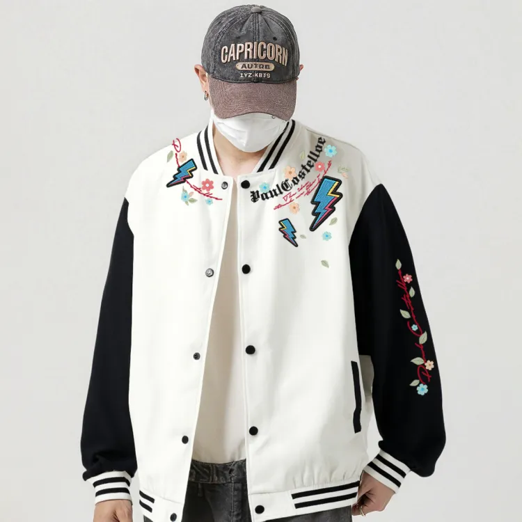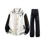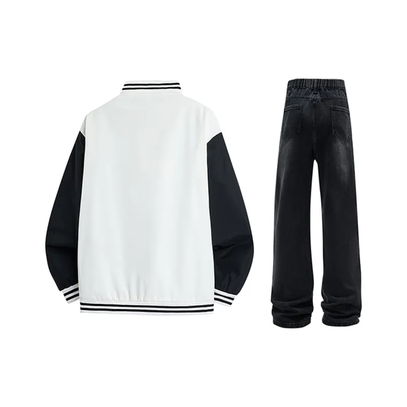 Комплект:Белая бейсбольная куртка + черные штаны