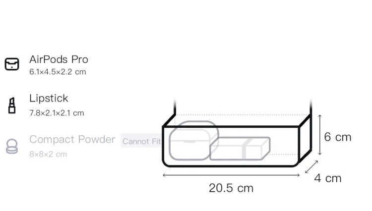 Длина (размер в длину): 20,5 см-21 см, Ширина: 4 см, Длина корпуса: 6 см