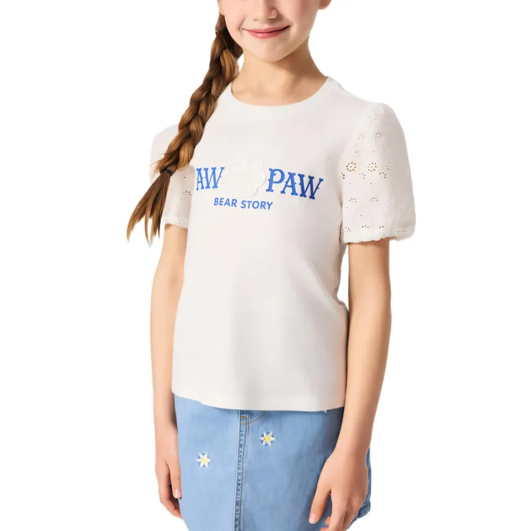 PAW IN PAW Cartoon Bear Рукав буф T Рубашка Сливочный Children Возраст 3-7 лет