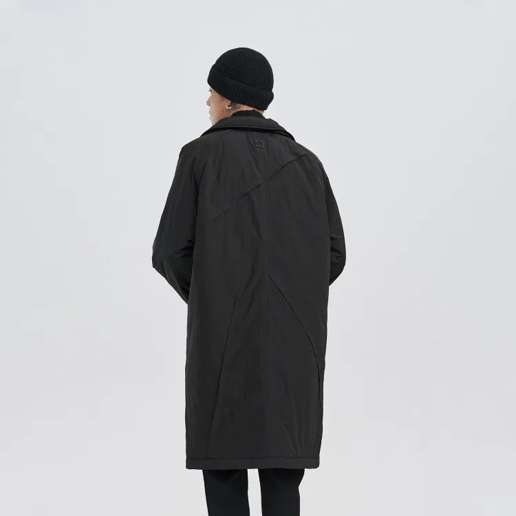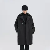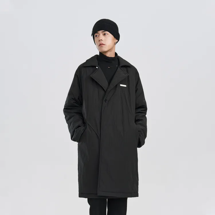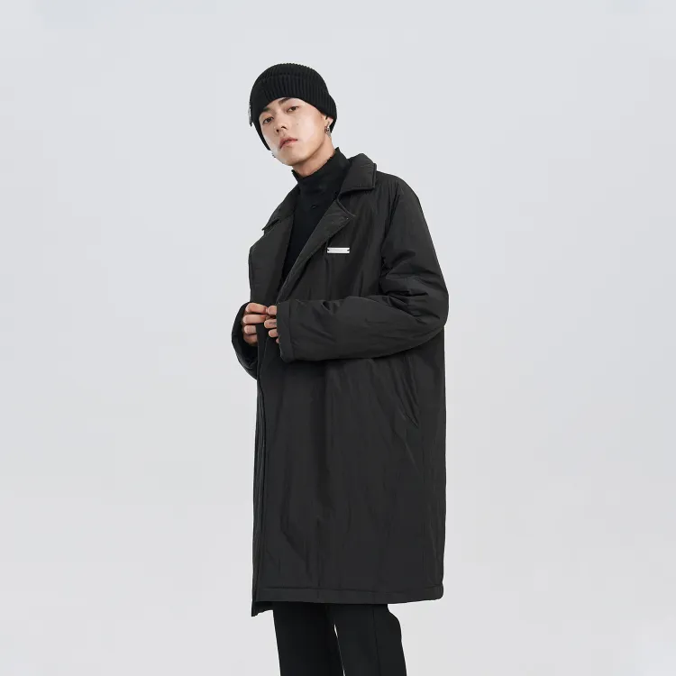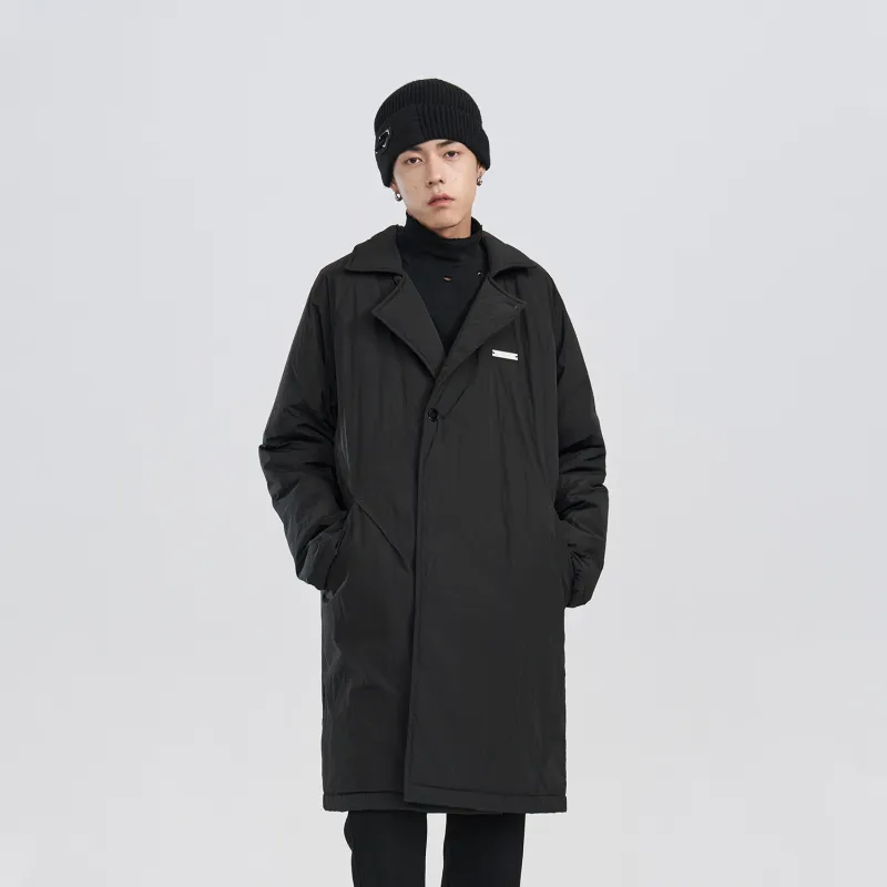 PCLP Однотонный Отложной воротник Свободный крой Утолщенный Длинный Пуховая куртка Унисекс Черный