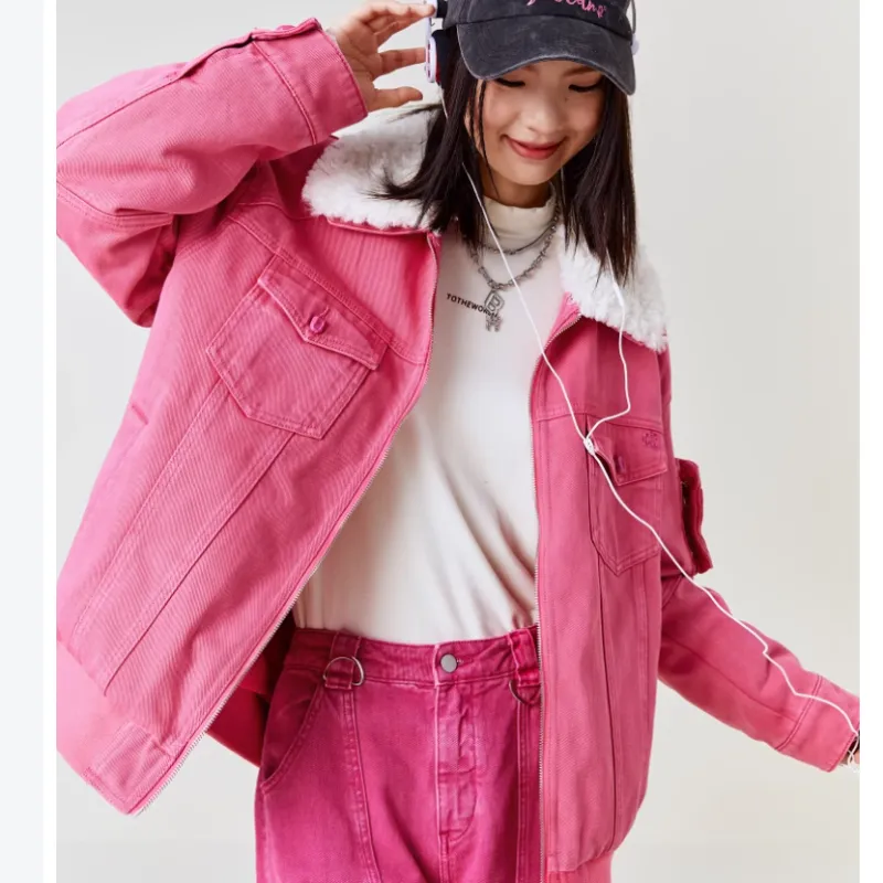 PEACEBIRD Джинсовая куртка женская розово-красного цвета