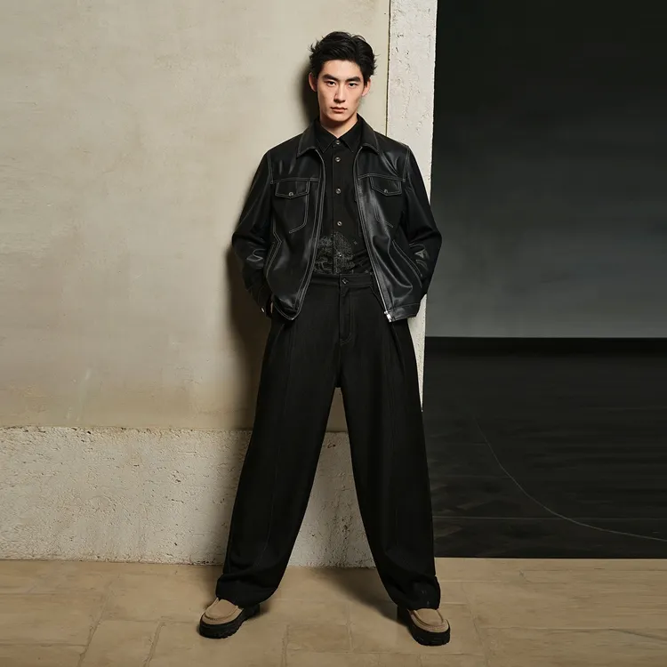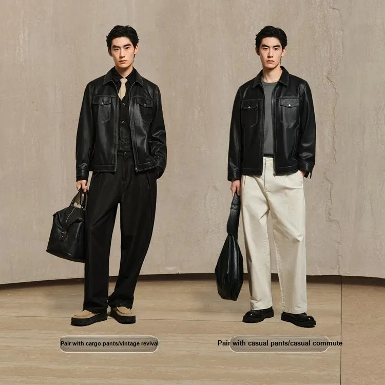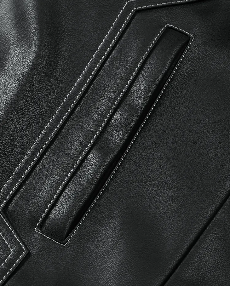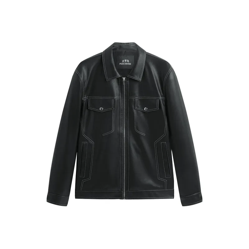 PEACEBIRD MEN Цветовой блок PU кожа Куртка с видимым швом Мужской