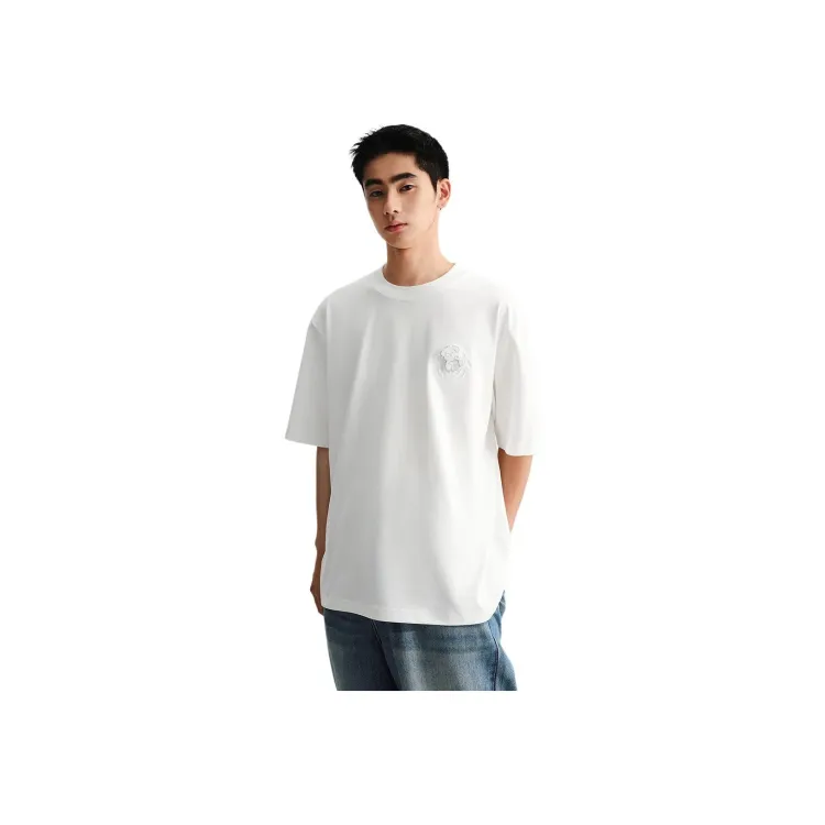 PEACEBIRD MEN Свободный крой Белая укороченная рубашка с короткими рукавами Мужская