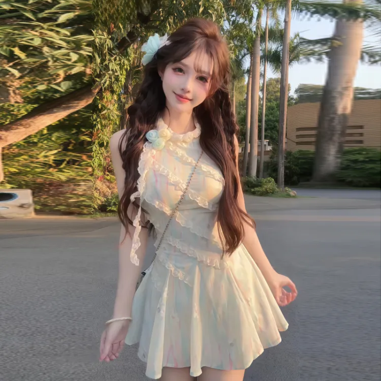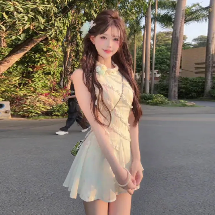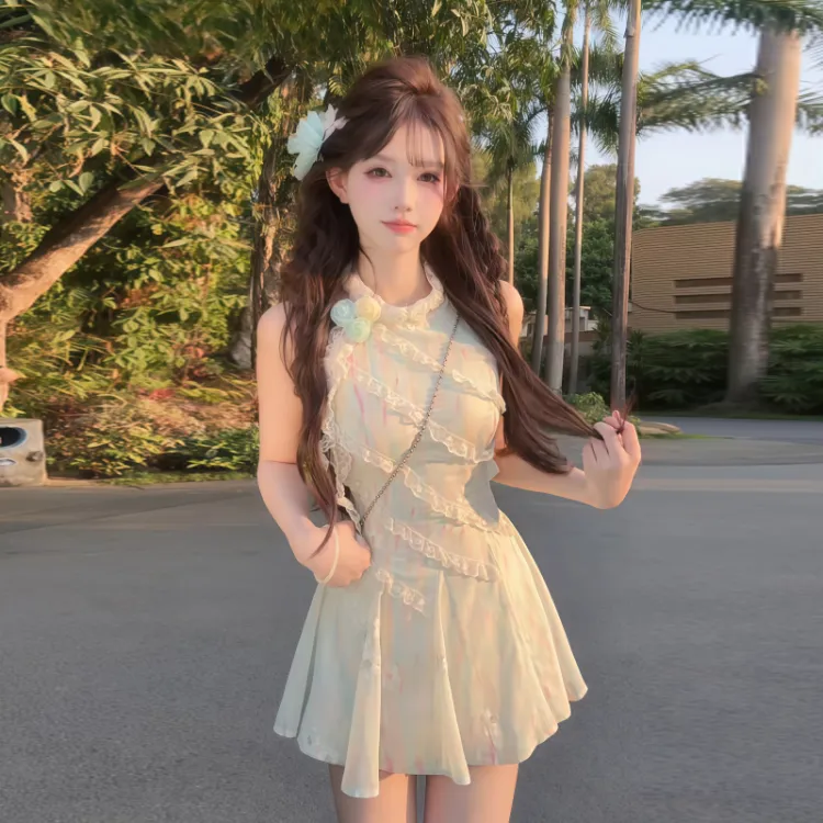 Зеленое укороченное платье