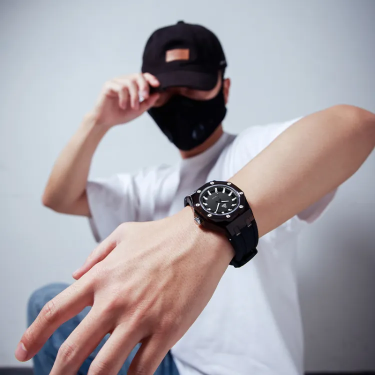 PEAK Colorful Series Кварцевый механизм Силиконовый ремешок Часы Мужские Черный циферблат