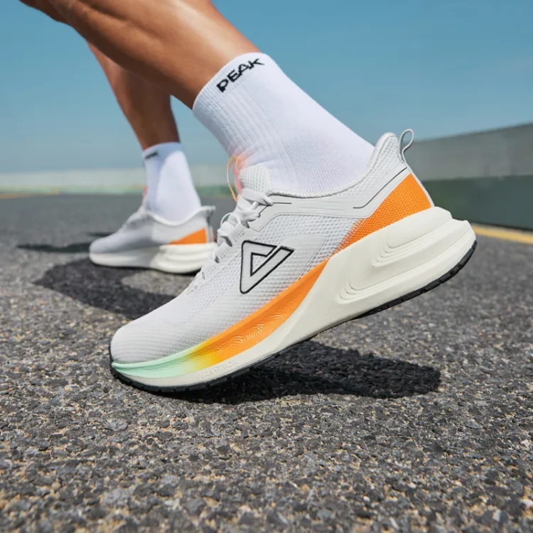 PEAK Амортизация Дышащий И Устойчивый Дизайн Низкий Топ Повседневные Беговые кроссовки Мужские Светло-серый Осенний апельсин