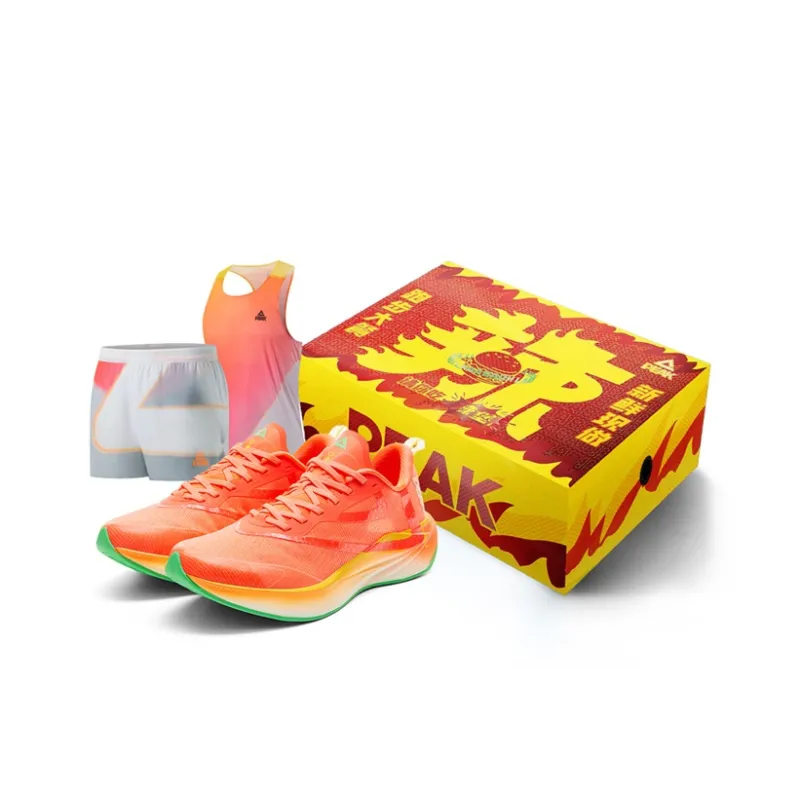 PEAK Амортизация Покрытие Отскок Устойчивость к истиранию Анти-перекатывание Противоскользящие Беговые кроссовки Мужские Неон Ярко-оранжевый