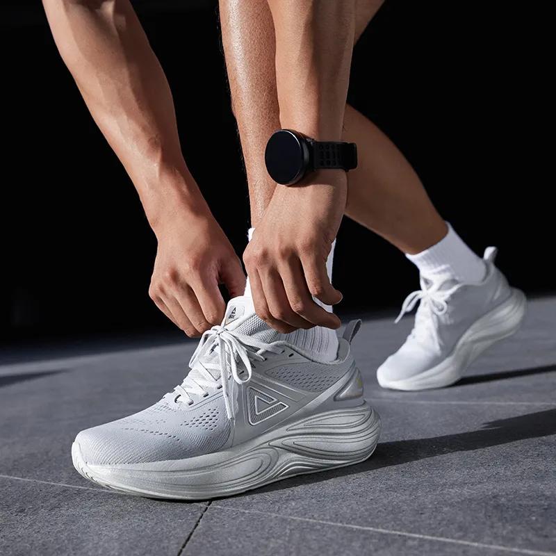 PEAK Амортизация противоскользящий низкий отскок кроссовки для бега мужские белый серый