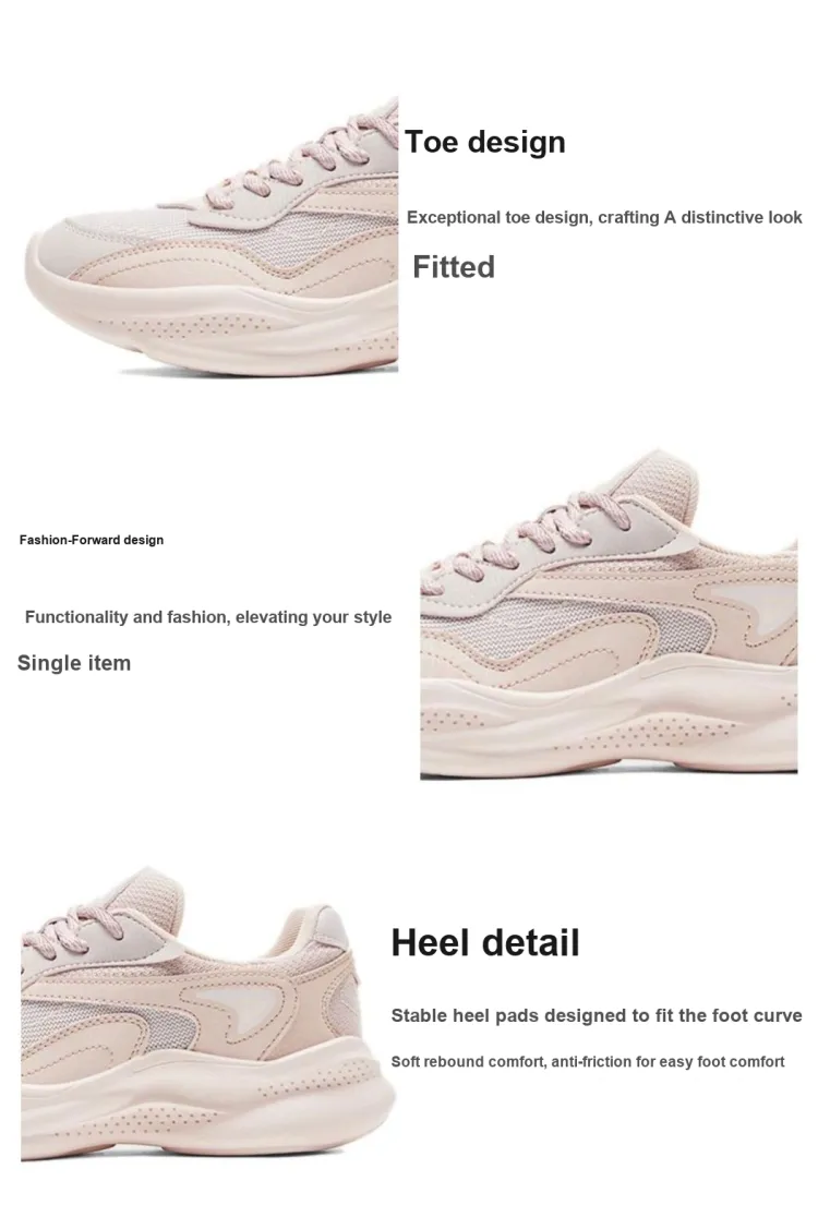 PEAK визуально увеличивает рост Низкий топ Толстая подошва Кроссовки Женские Розовые