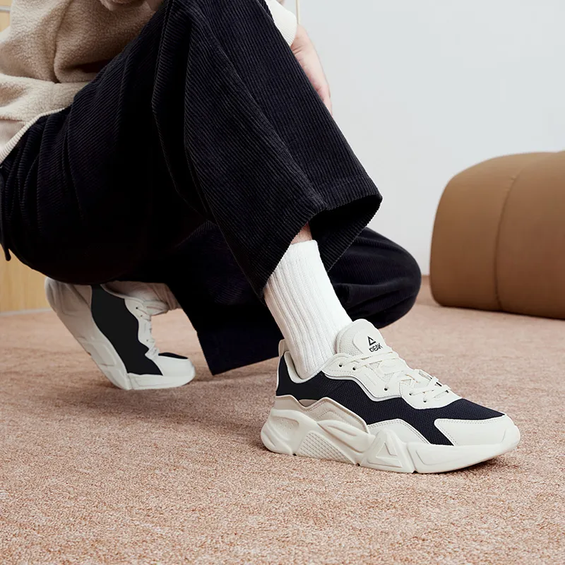 PEAK визуально увеличивает рост Устойчивый к истиранию Легкий Противоскользящий Низкий Топ Толстая подошва Мужские Холщовый Белый Черный