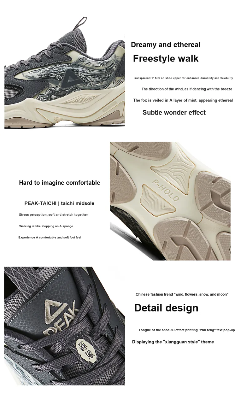 PEAK Китайский Innovation Тайцзи Chasing The Wind Амортизация Rebound Легкий Низкий Топ Повседневная обувь Мужская
