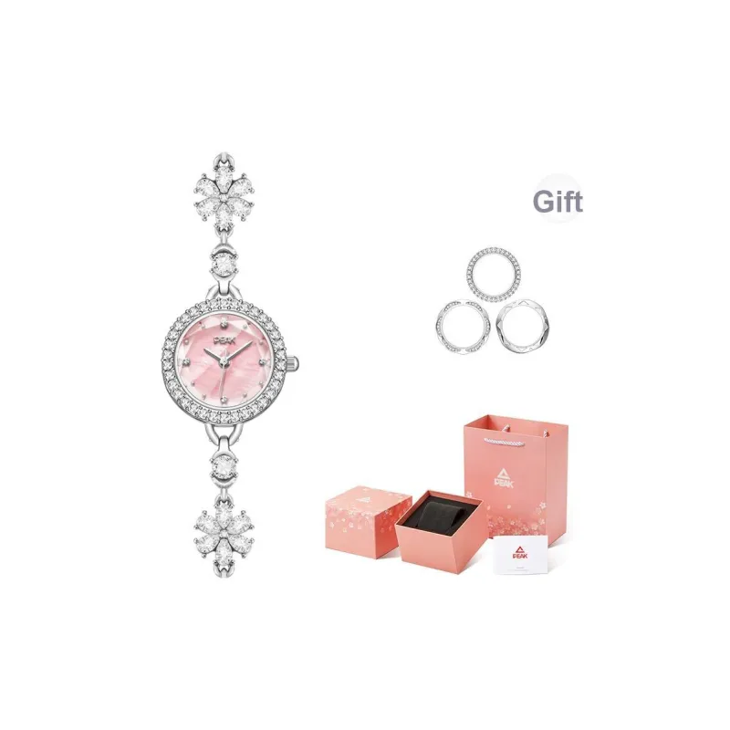 PEAK Кварцевый механизм нержавеющая сталь ремешок с цирконовым стразом женские часы розовый циферблат