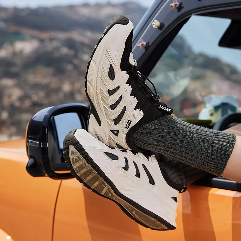 PEAK Амортизаторы Shock Slip-resistant Abrasion-resistant Breathable Low-top Беговые кроссовки Мужские Бежевый Черный