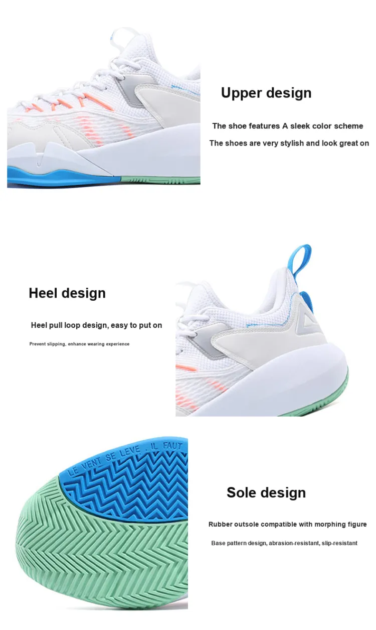 PEAK Шокабассорбер Slip-Resistant Abrasion-Resistant Низкий Топ Баскетбольные Кроссовки Мужские Белые
