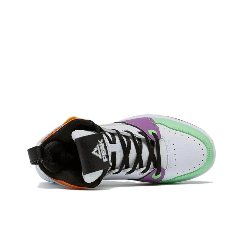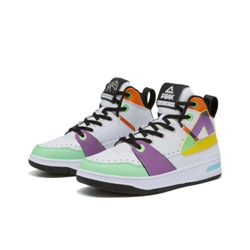 PEAK Taichi 910 Тайцзи Треугольник Противоскользящие Устойчивые к износу Высокие Кроссовки для скейтбординга Женские Большие Белые Фиолетовые