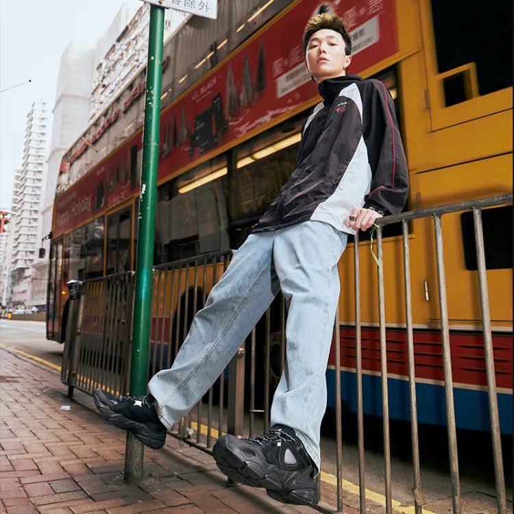 Кроссовки PEAK Taichi P2K с толстой подошвой амортизация отскок устойчивость к истиранию низкий верх кэжуал мужской полностью черный
