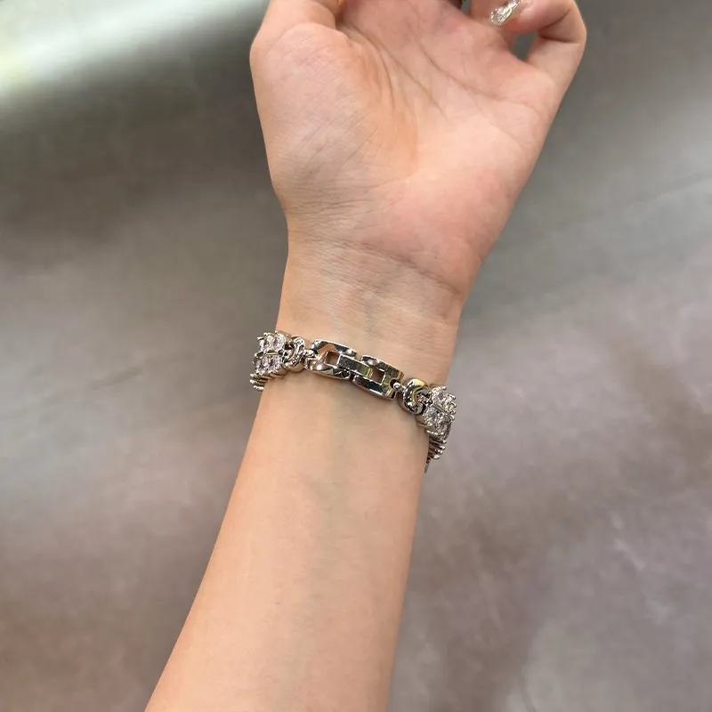 Серебряная цепочка украшенная стразами, металлический ремешок