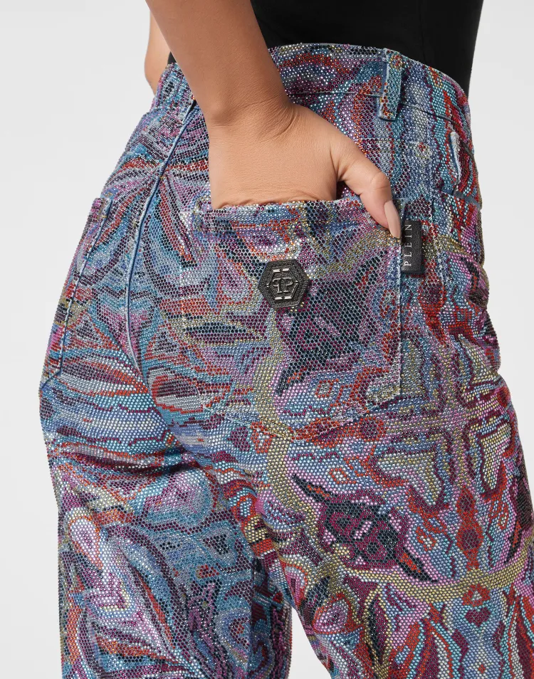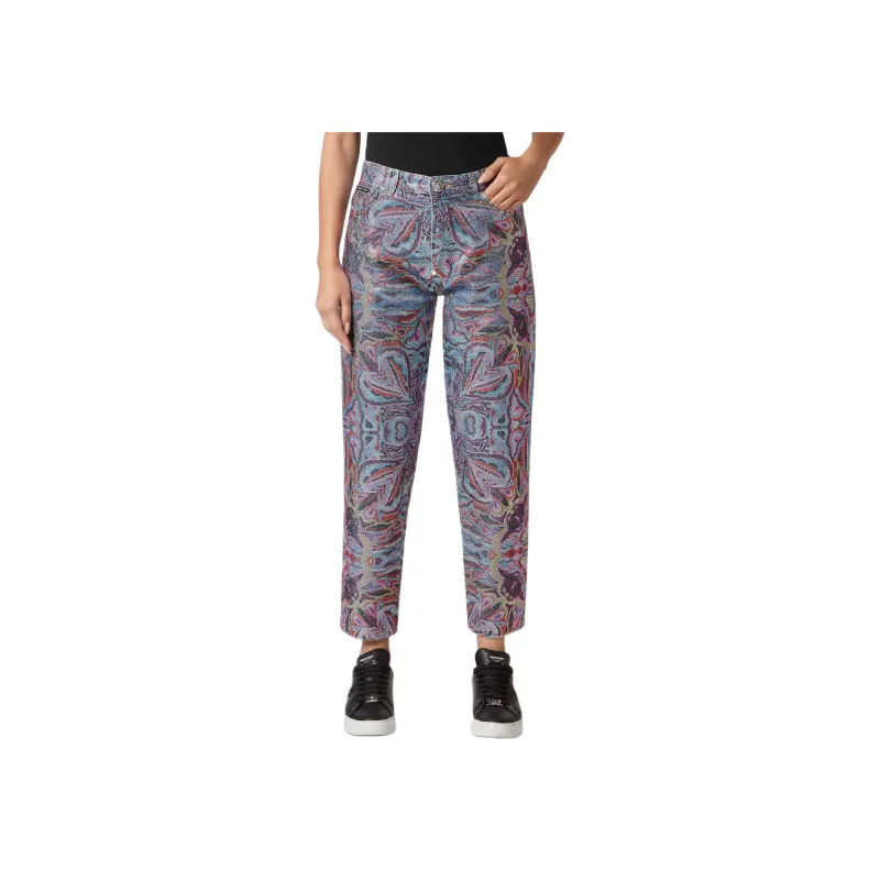 PHILIPP PLEIN Деним Брюки Mom Форма Кристальный Colorful Circus Джинсы Женские Многоцветный