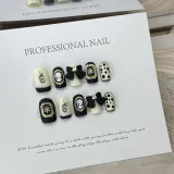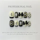 PIAC Черный Короткий Квадрат Розово-золотой Hepburn Avatar Chanel Inspired Бант Handcrafted False Nail Квадрат