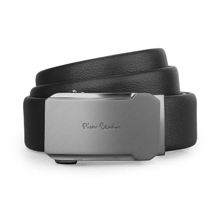 PIERRE CARDIN Бизнес Повседневный Автоматическая застежка Ремни из крупнозернистой текстуры коровьей кожи Мужской Черный Ширина 3,4 см