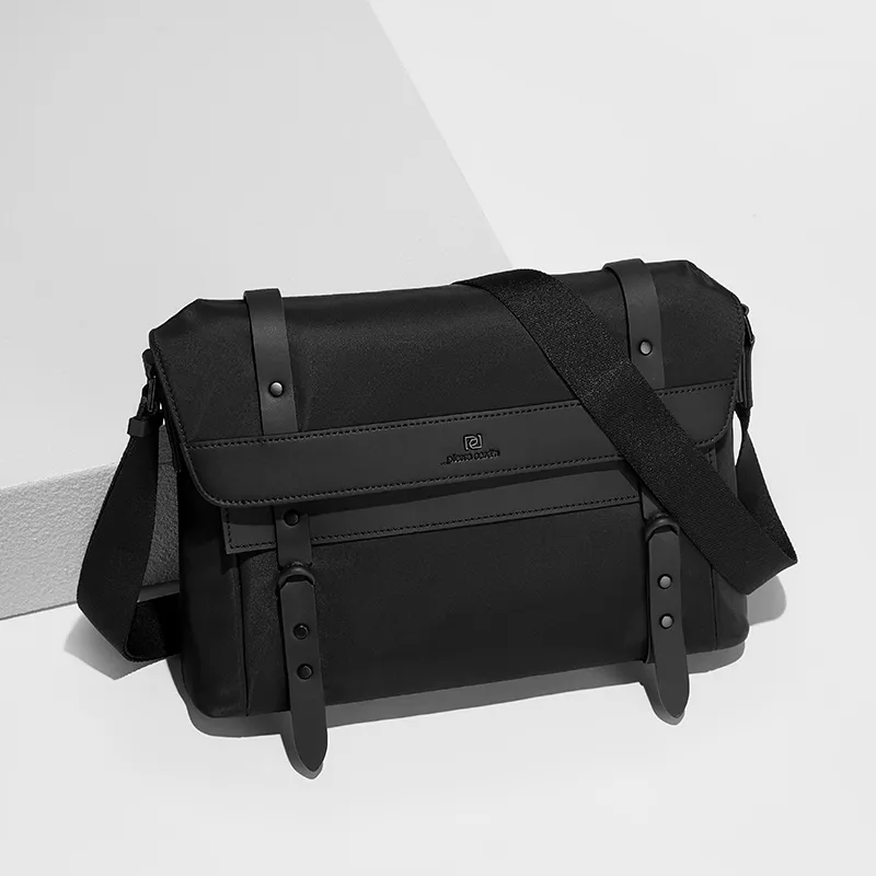 PIERRE CARDIN Нейлоновая сумка через плечо сумка для доставки средний размер черная мужская