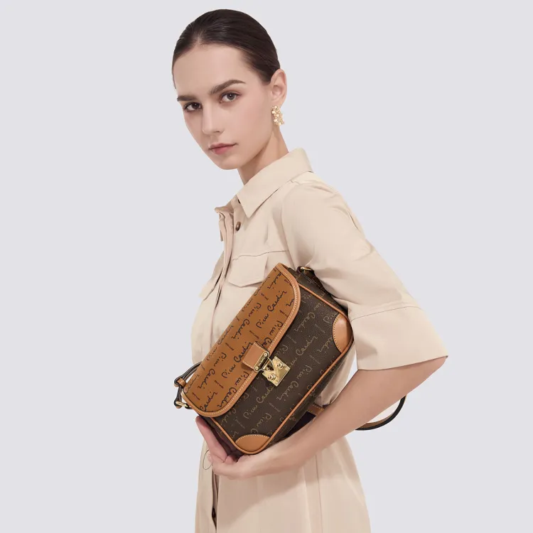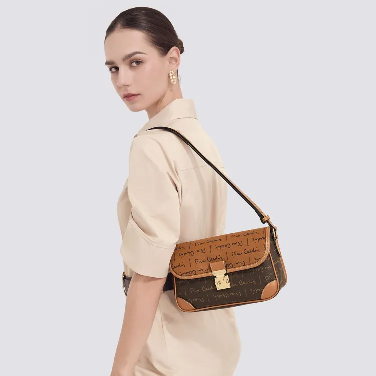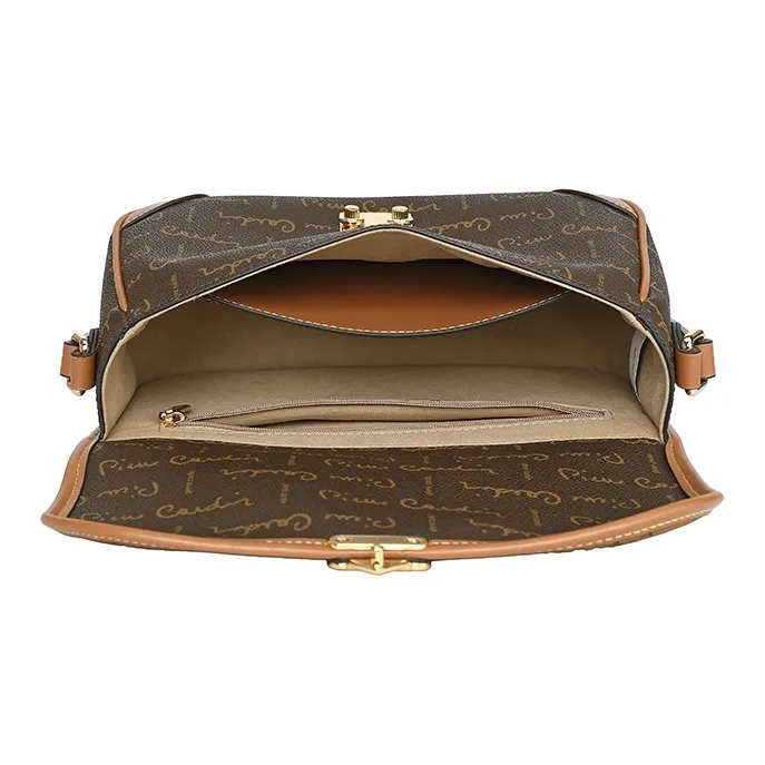 PIERRE CARDIN PVC Текстильная сумка через плечо женская кофейного цвета
