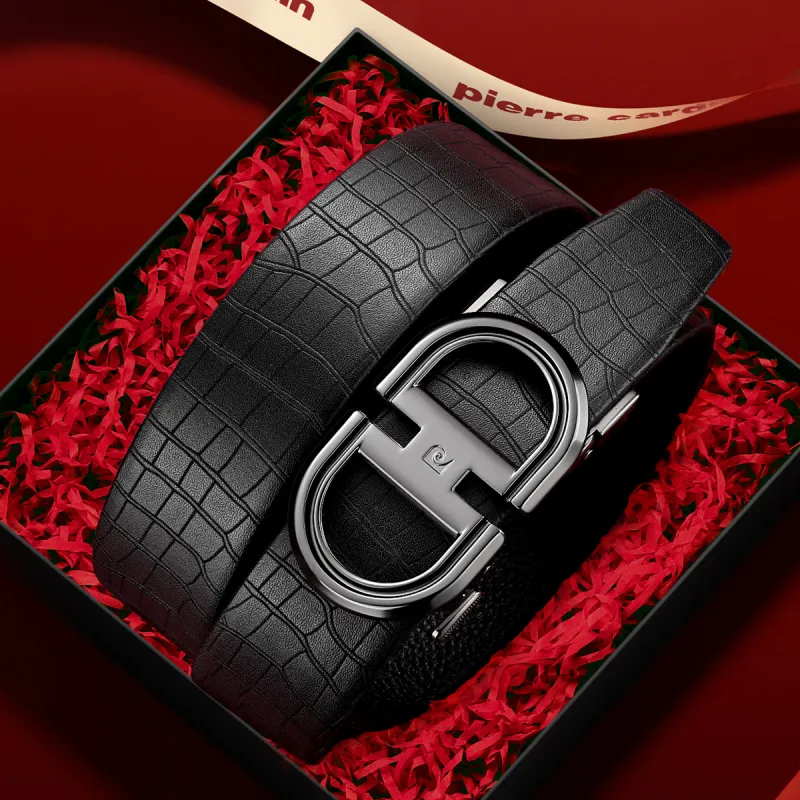 PIERRE CARDIN Ремни из крупнозернистой текстуры коровьей кожи Мужской Черный 3,45CM