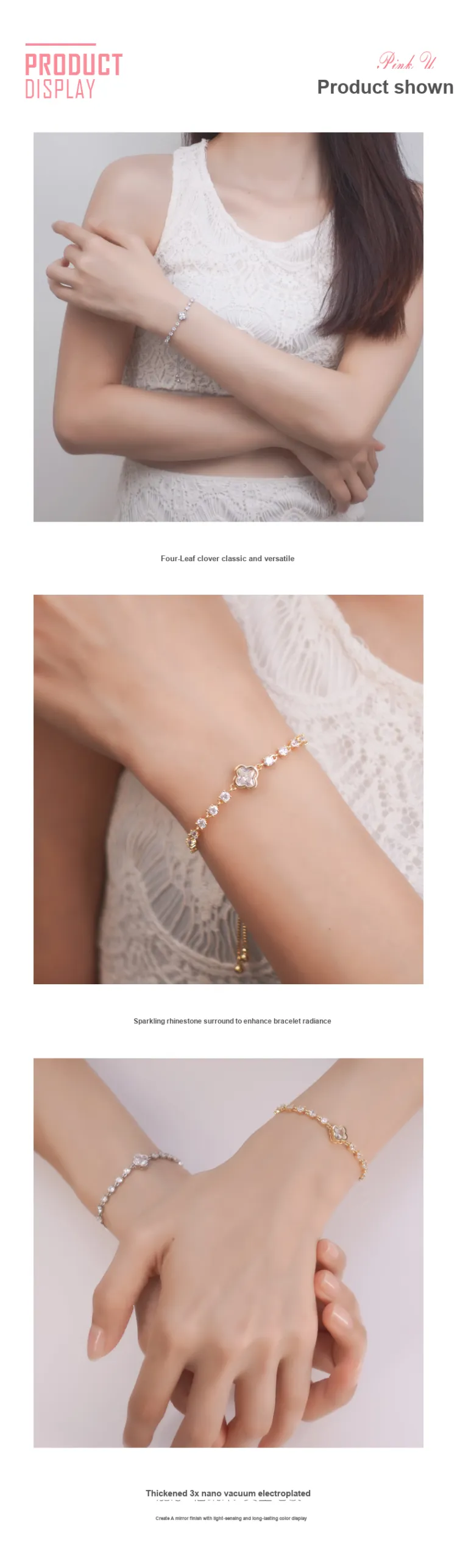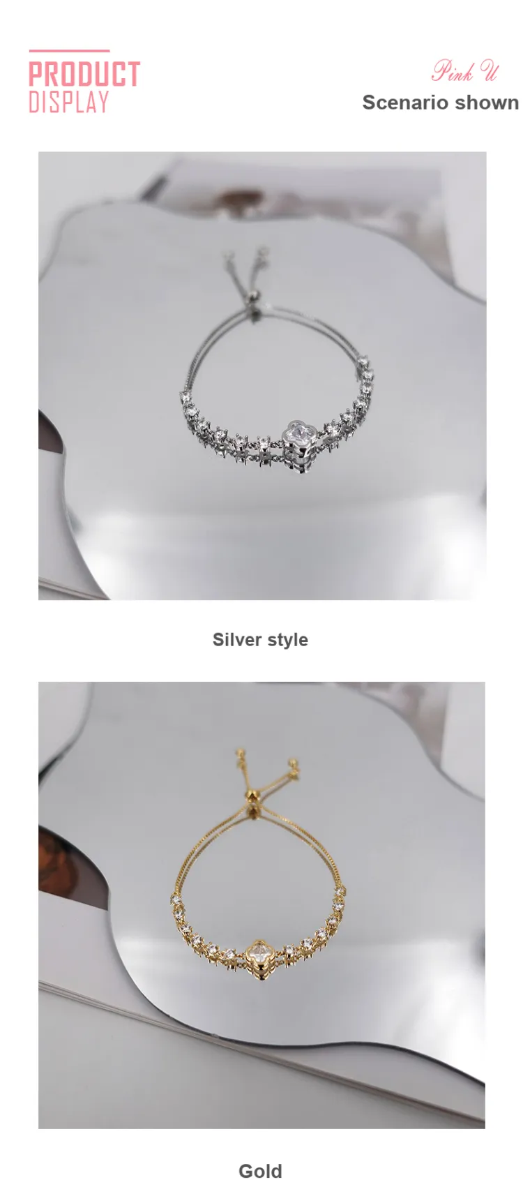 PINK U Сплав Браслеты Женские Серебро Золото