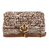 PINKO 100% хлопок с кожаными вставками сумки через плечо большой размер белый коричневый