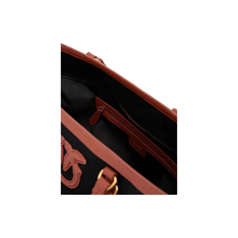 PINKO Холст Тоут Сумка Сумка для покупок Сумка через плечо Сумка среднего размера Женская Черная