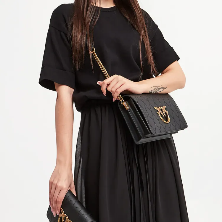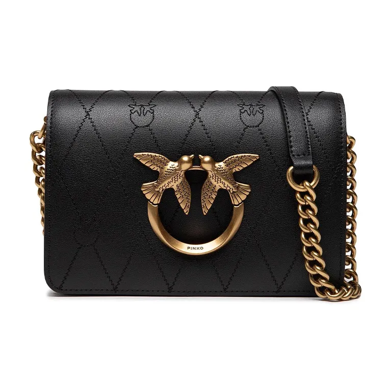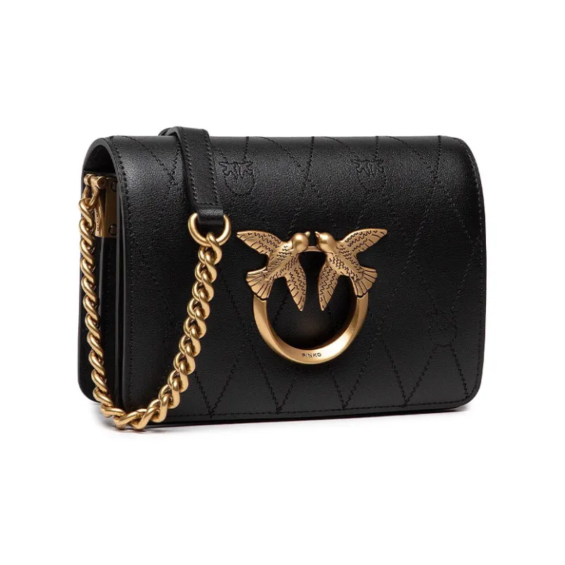 PINKO Click Series Коровья кожа Swallow Сумка Сумка через плечо Мини Женская Черная