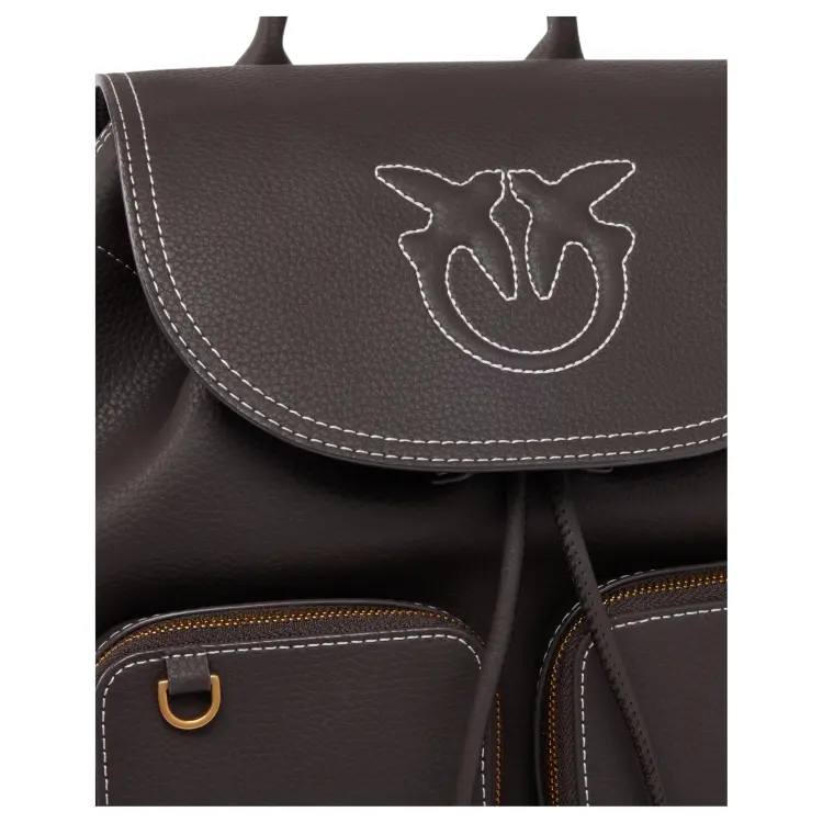 PINKO Рюкзак из коровьей кожи маленький женский шоколадный