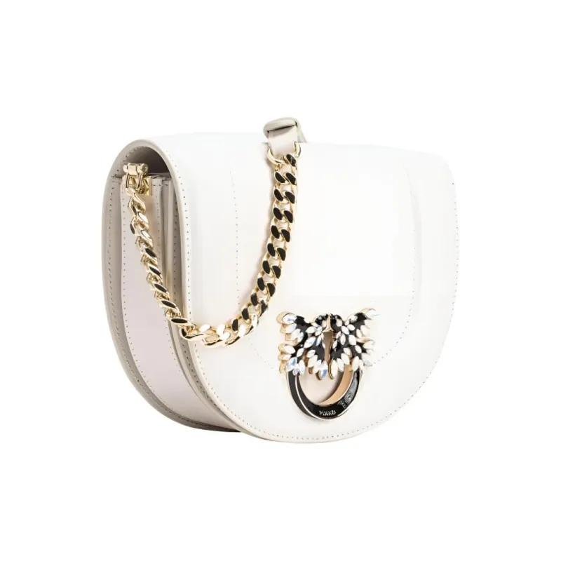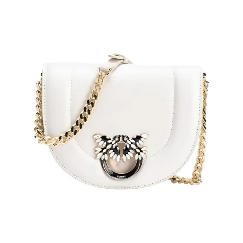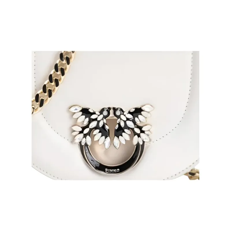 PINKO Сумка из коровьей кожи сумка через плечо мини женская шелковая белая и светло-золотая