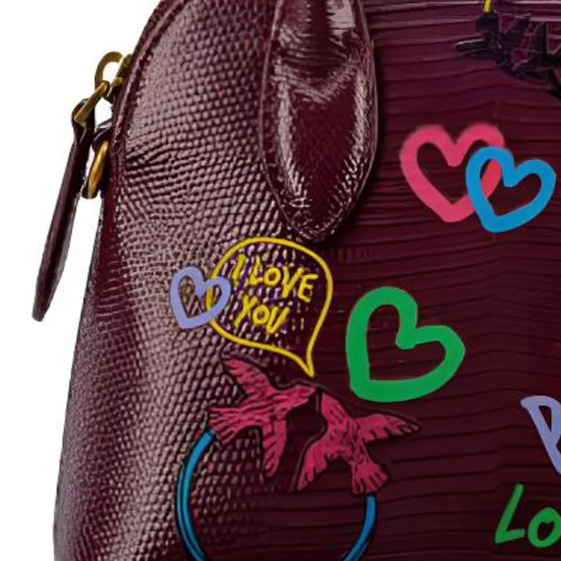 PINKO Коровья кожа Swallow Сумка Сумка через плечо Сумка Маленькая Женская Бургунди