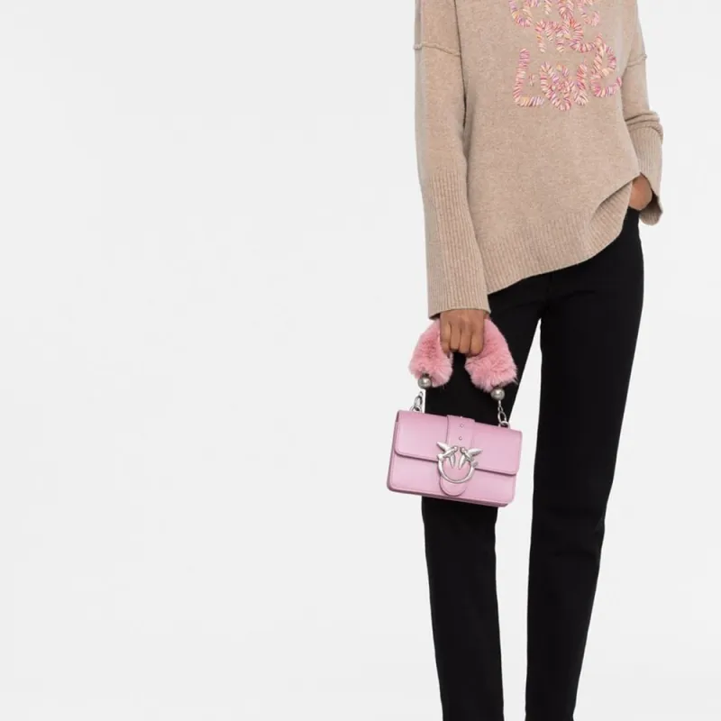 PINKO Экологичный Искусственный мех Swallow Сумка Подмышечная Сумка Сумка через плечо Женская Розовая