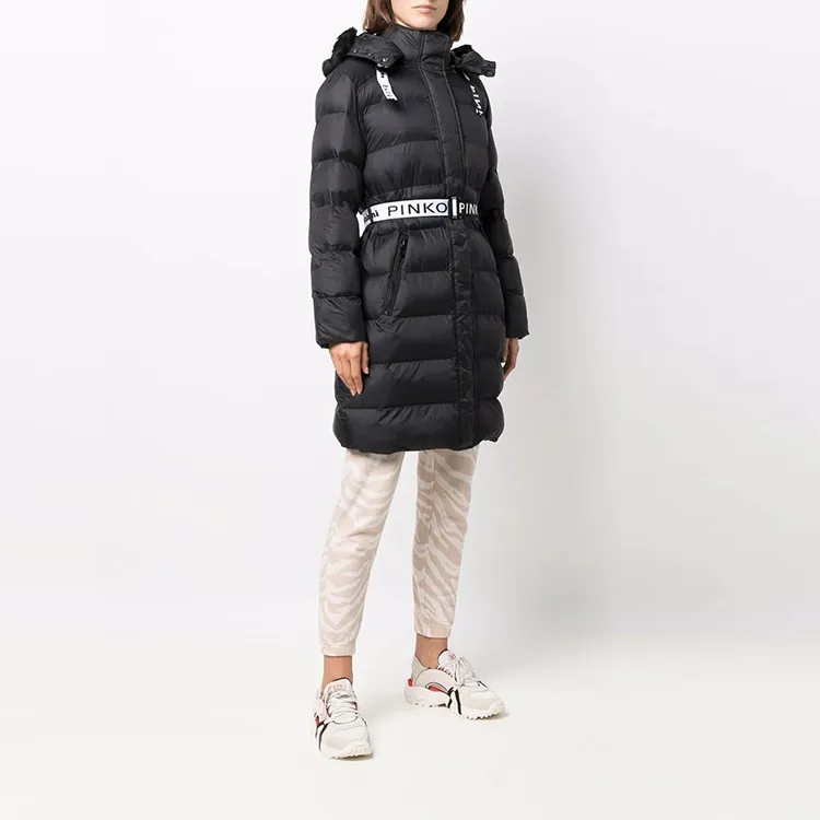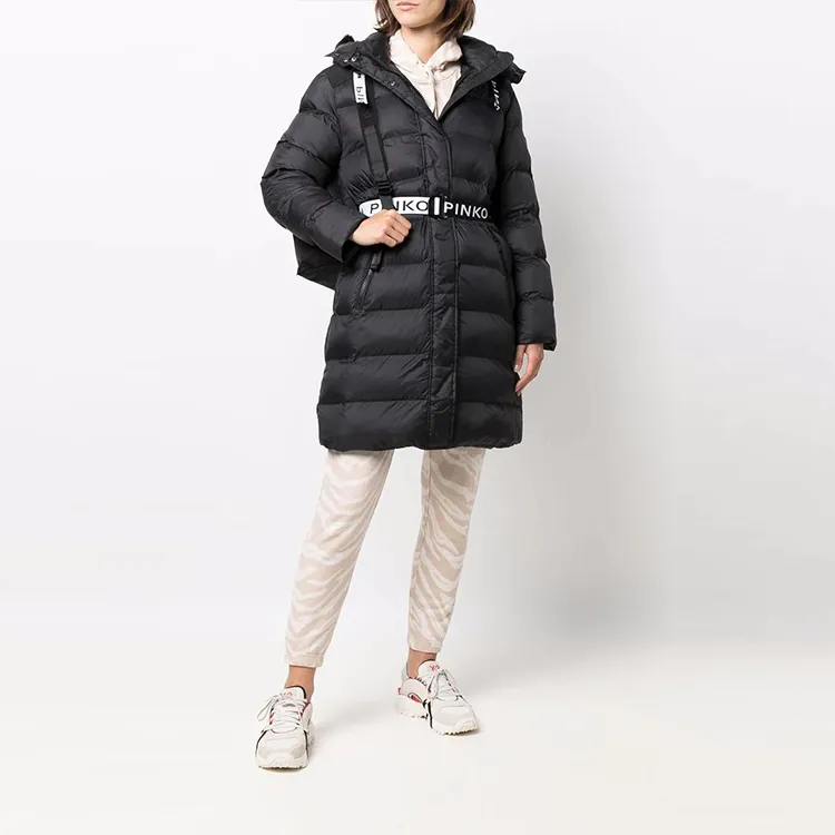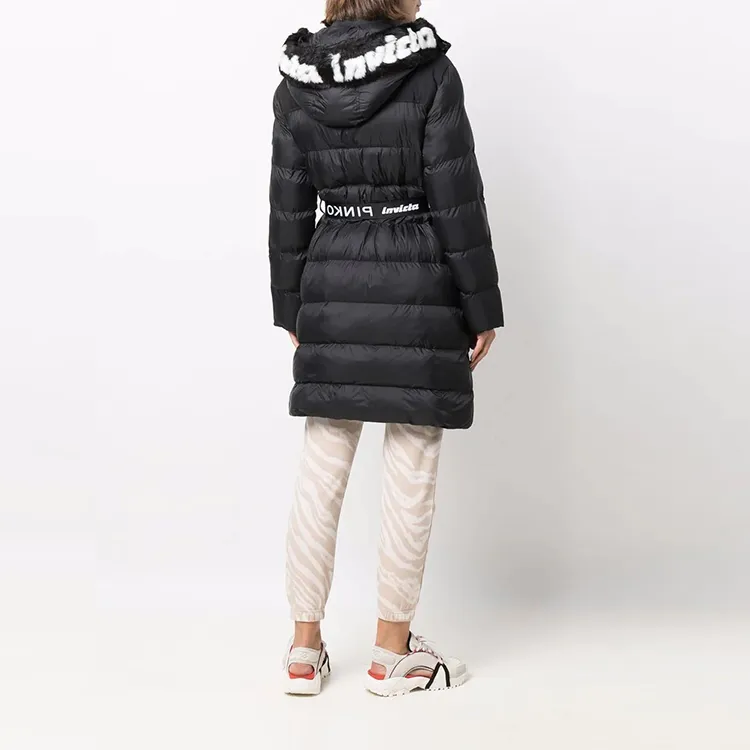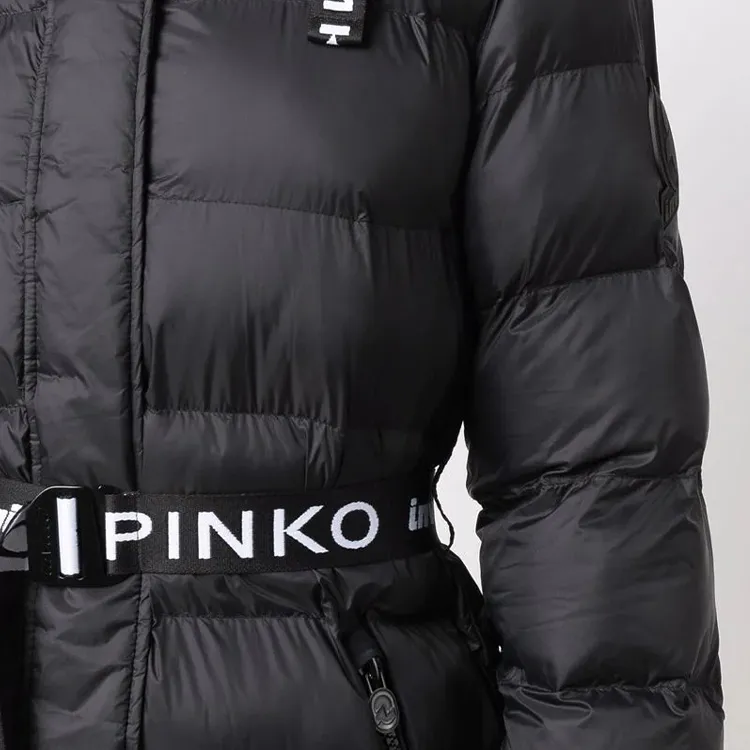 PINKO FW21 Однотонный Letters С капюшоном MID Длина Пуховая куртка Женская Черная