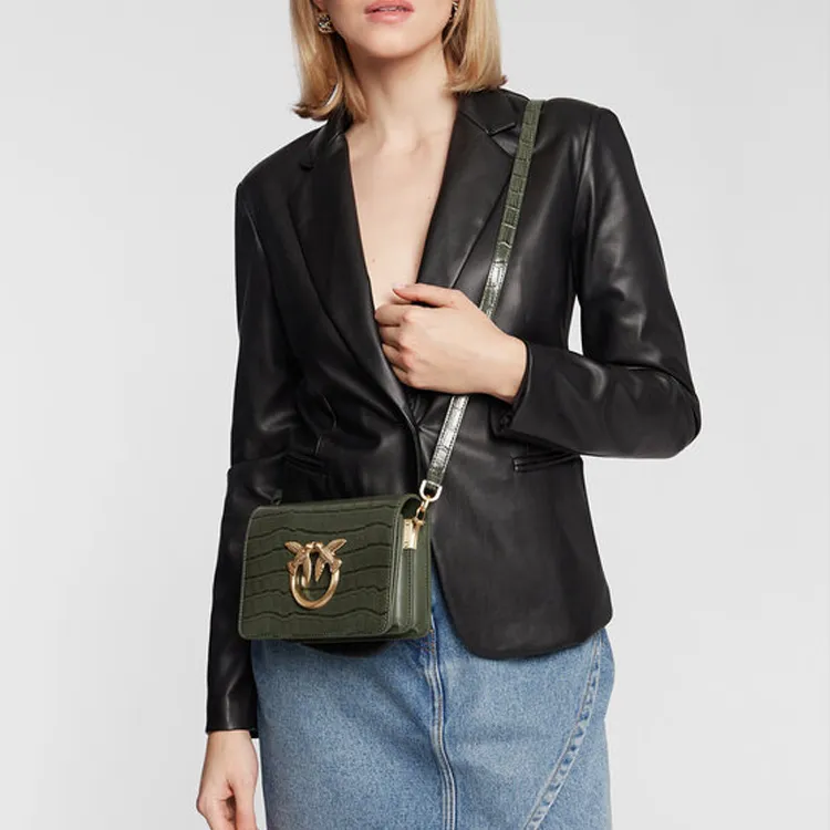 PINKO GRAIN LEATHER Сумка через плечо Сумка на плечо Женская Темно-зеленая