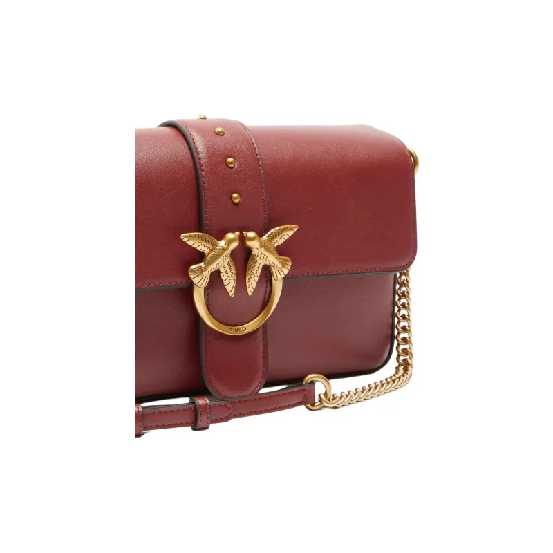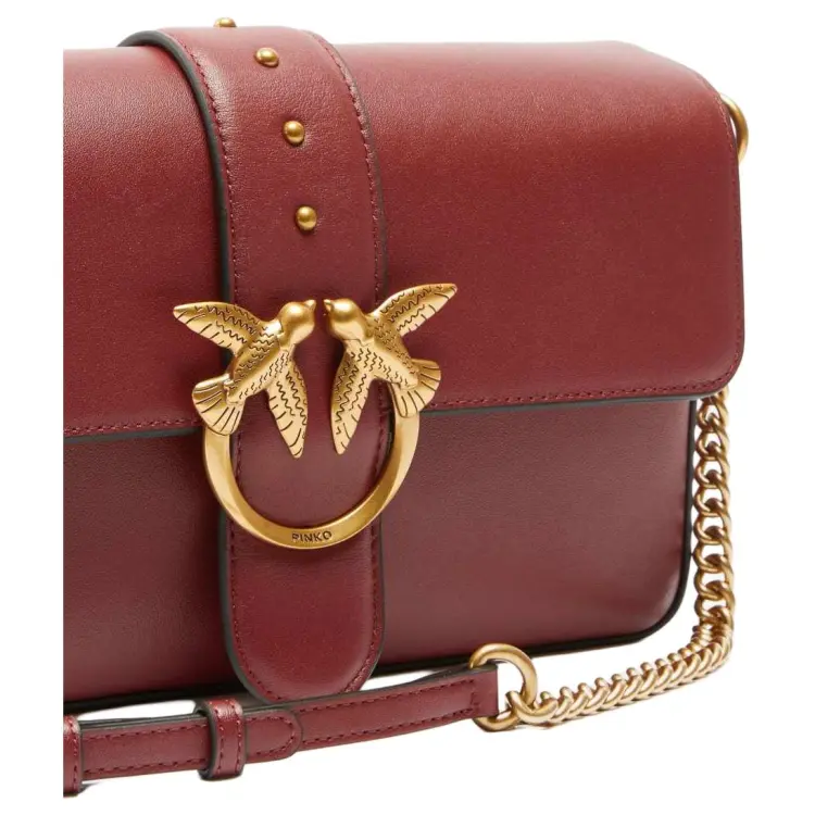 PINKO Love Bag Сумка из коровьей кожи большая женская бордового цвета