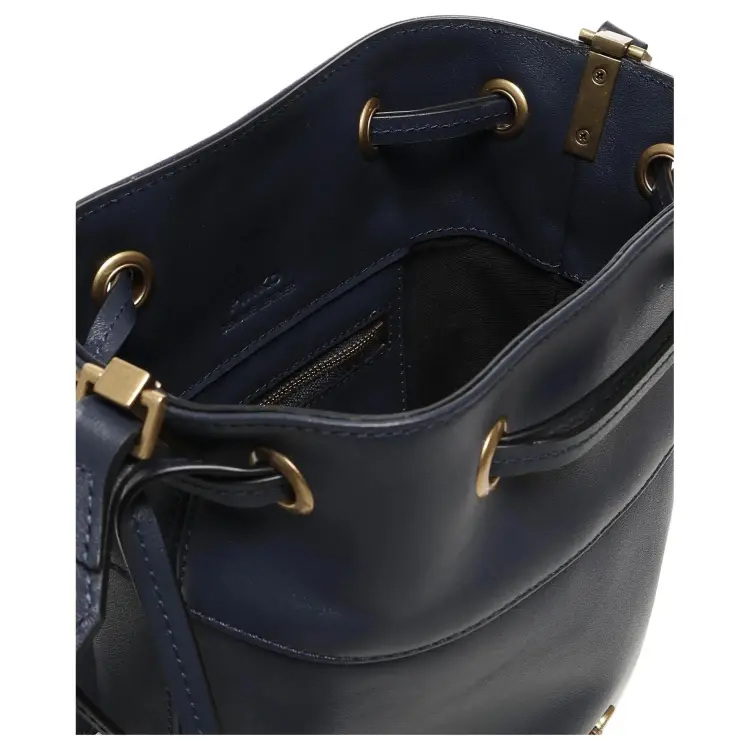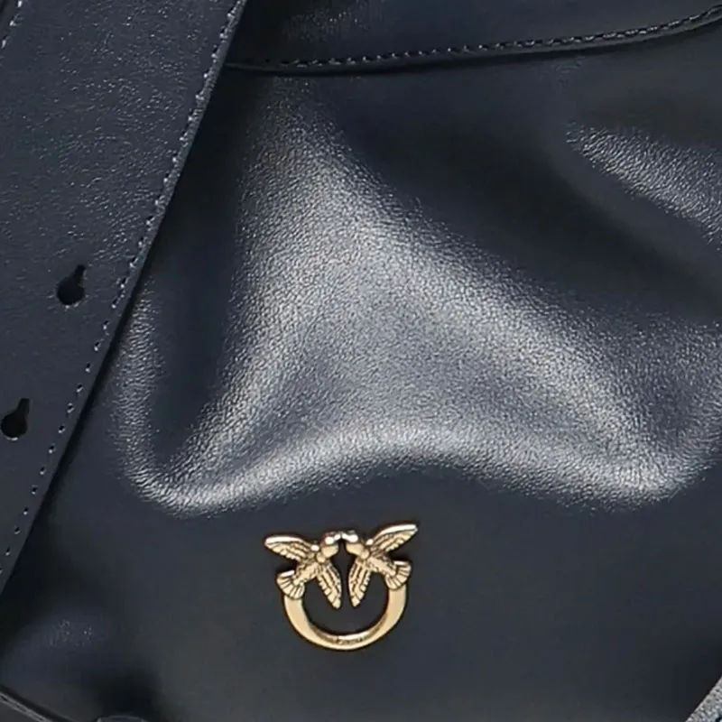 PINKO Love Birds series Корова Кожа Ведрообразная Сумка Сумка через плечо Мини Женский Темно-синий
