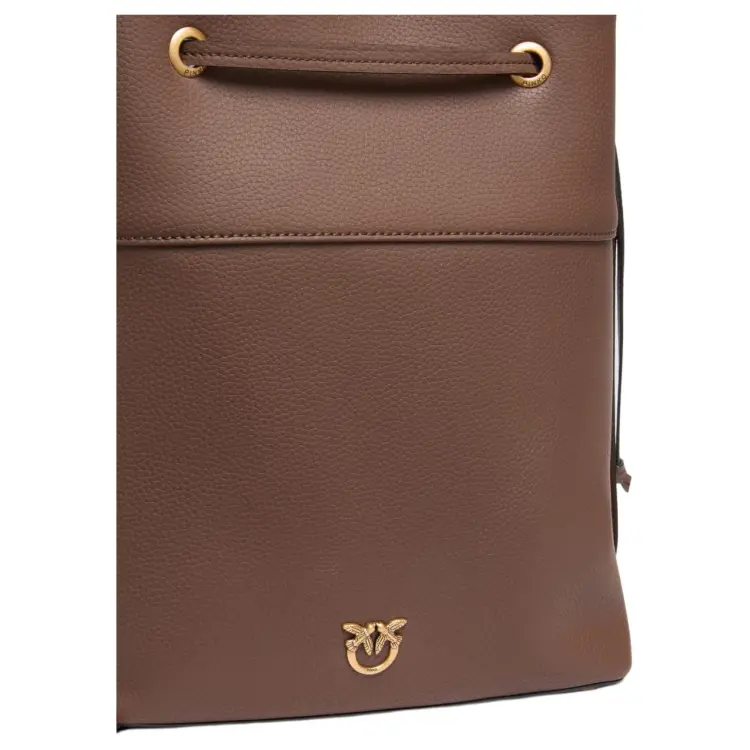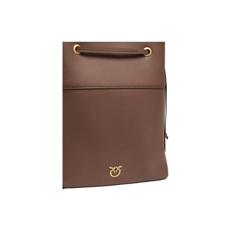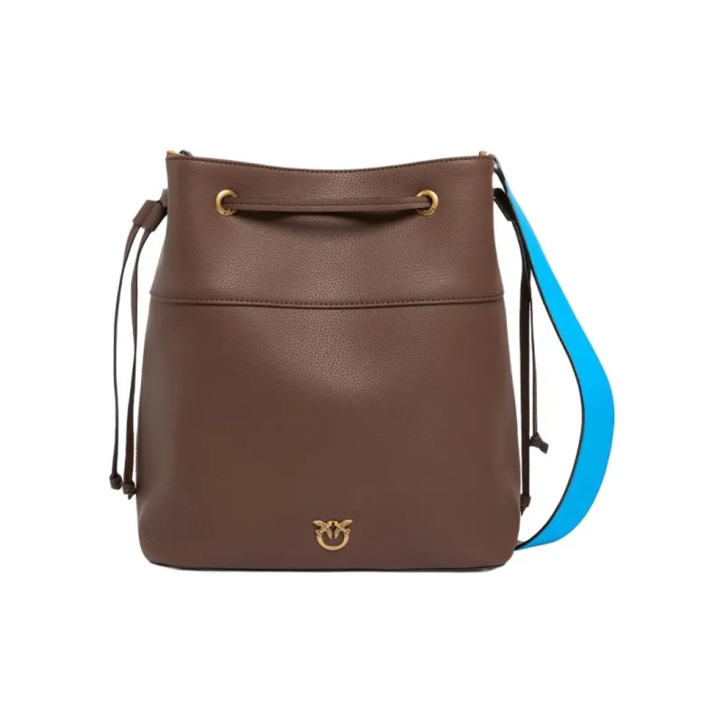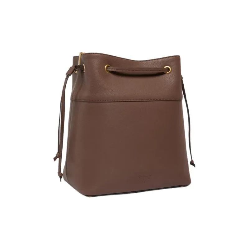 PINKO Love Birds series Корова Кожа Ведрообразная Сумка Плечевая Сумка Средний Женский Коричневый