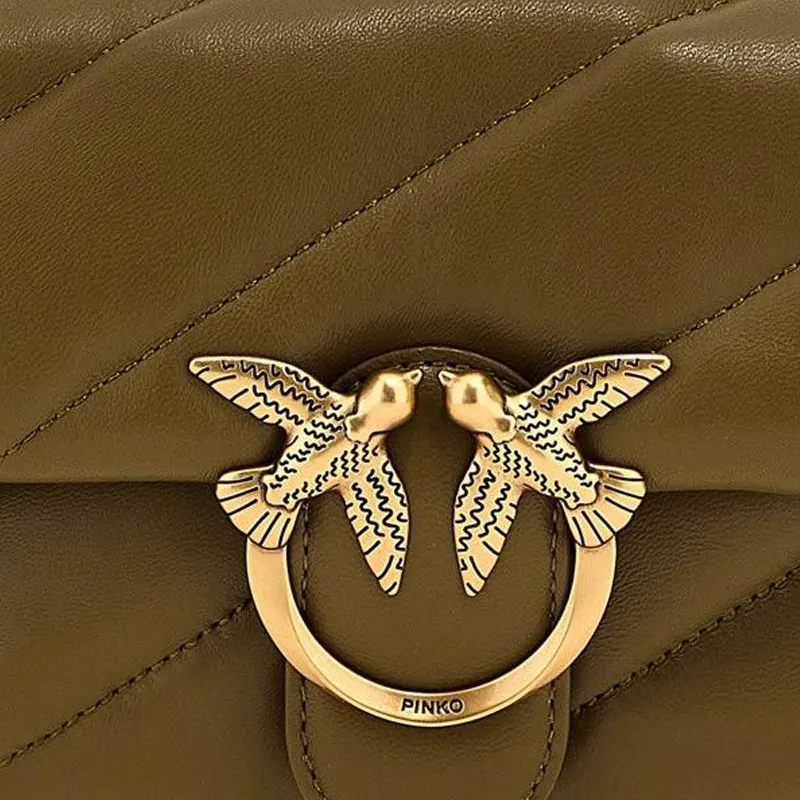PINKO LOVE Collection Puff Овечья кожа Сумка через плечо Мини Женская Армейский зеленый