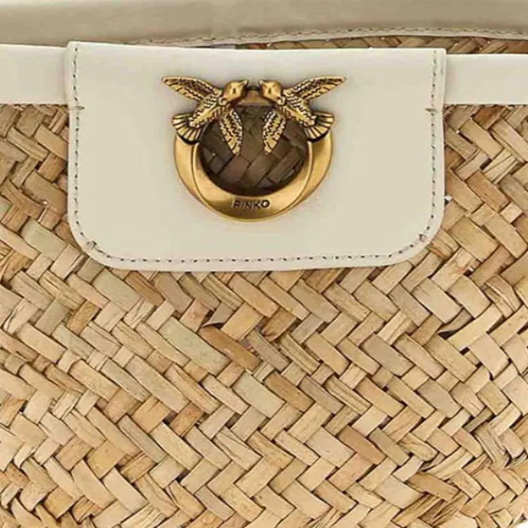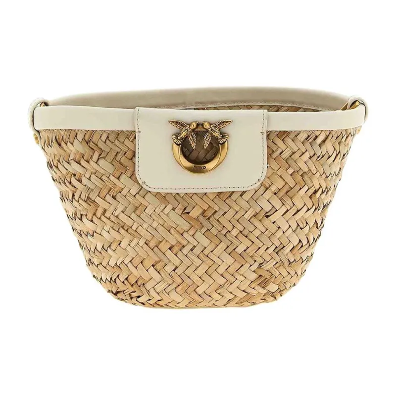 PINKO Love Series Рафия Сумка через плечо Сумка на плечо Женская Хаки и Бежевая