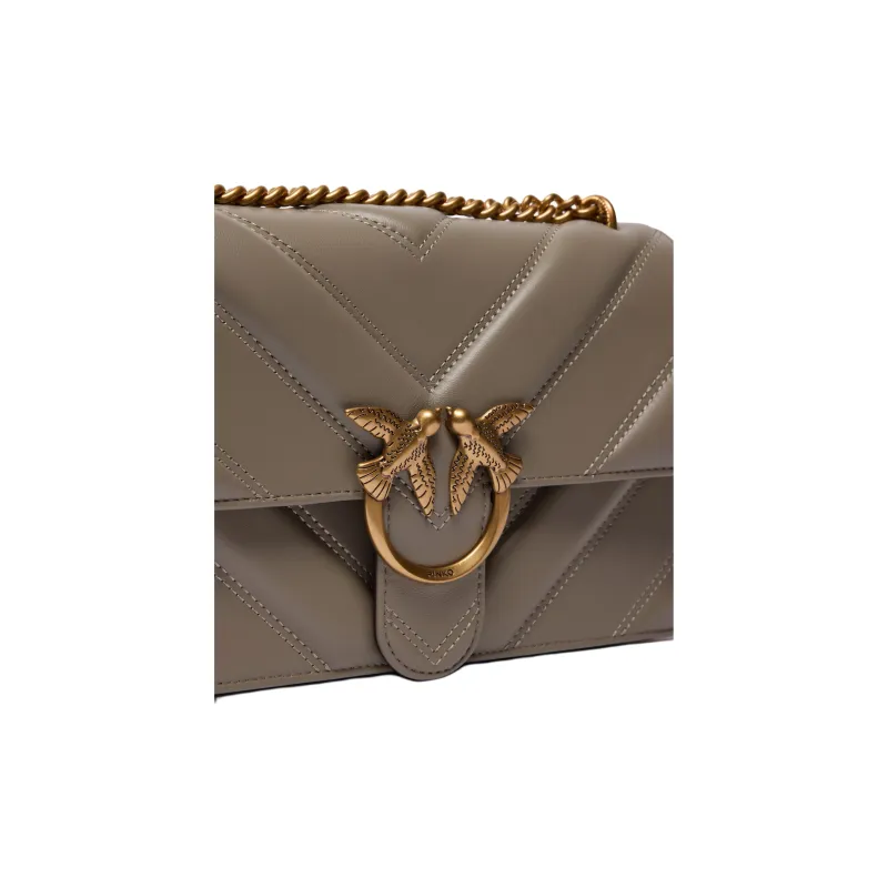 PINKO Love Series Овчина Сумка через плечо Средняя Женская Серого цвета