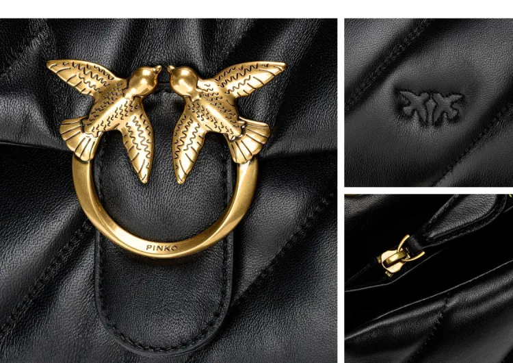 PINKO Нейлон Полиуретан Овчина Сумка через плечо Большая Женская Черная