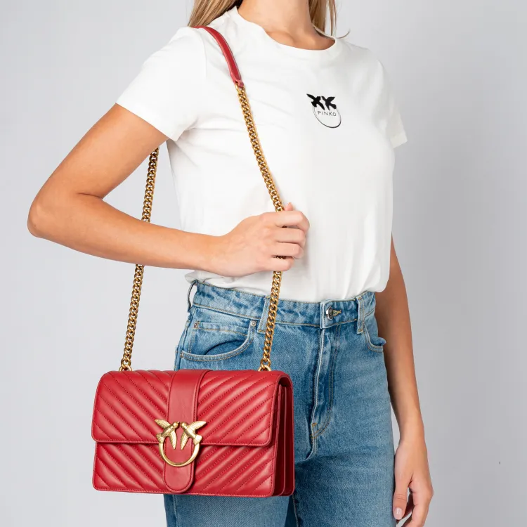 PINKO Love Icon Sheepskin Calfskin Маленькая квадратная сумка сумка через плечо сумка на плечо женская красная