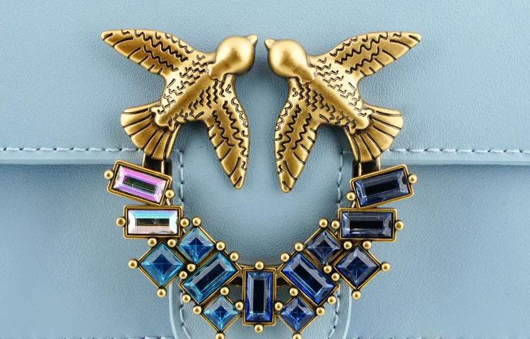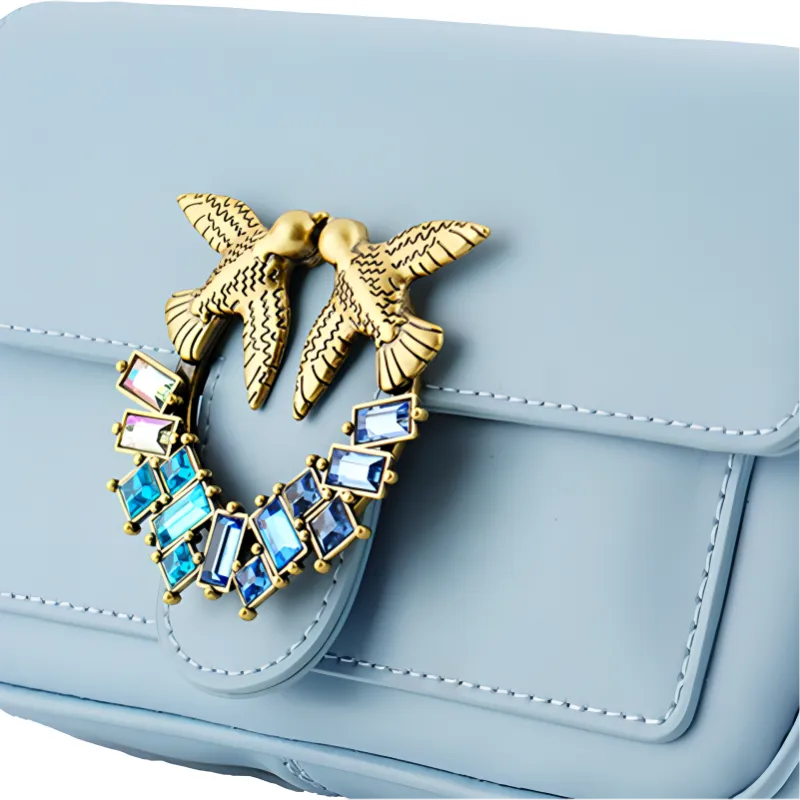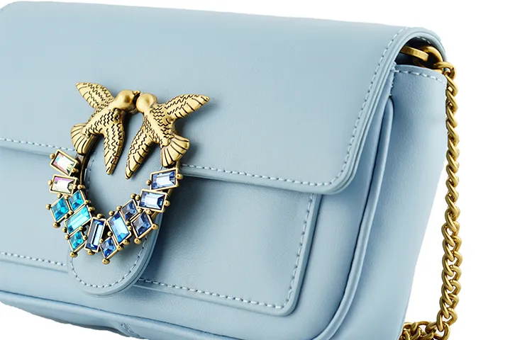 PINKO Pocket Love Коровья кожа Bird Сумка Swallow Сумка Сумка через плечо Маленькая Женская Небесно-голубая