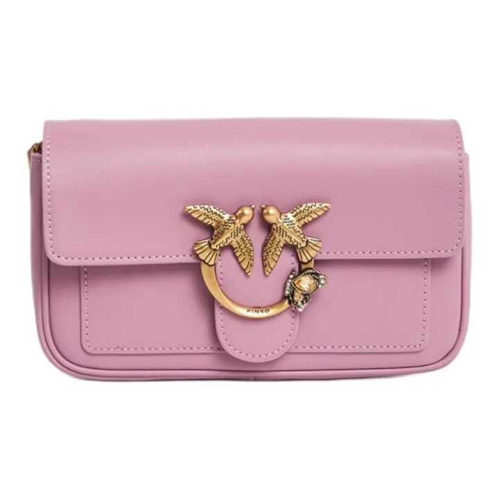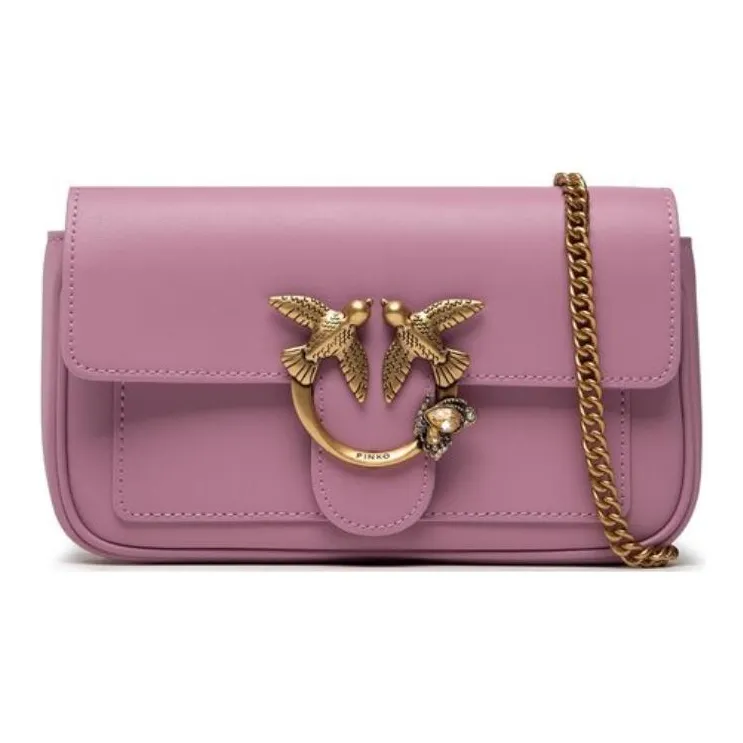 PINKO Pocket Love Натуральная кожа Bird Сумка Swallow Сумка Сумка через плечо Сумка через плечо Маленькая Женская Розовая